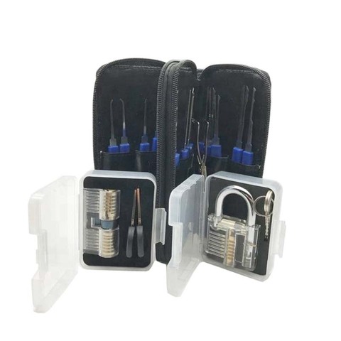 透明な練習用ロックピッキングツールセットを備えた24個のステンレス鋼ロックピックセット